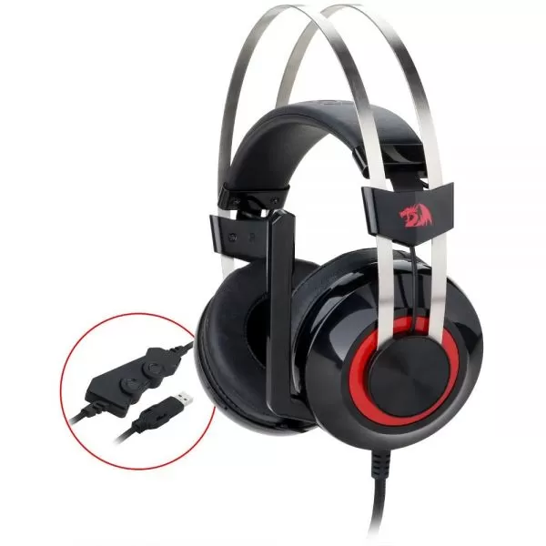 Redragon Talos Black, sunet surround 7.1, functie de vibratii, include microfon (sensibilitate: -45dB±3dB, impedanta: 2.2KΩ), difuzoare: 40mm (frecventa raspuns: 20Hz-20KHz, sensibilitate (S.P.L): 119dB, impedanta: 16Ω), telecomanda pe fir, design ergonomic, conectori: 1x USB, lungime cablu: 2m
