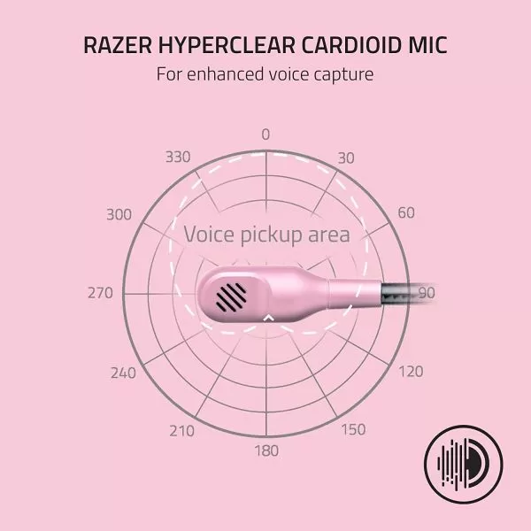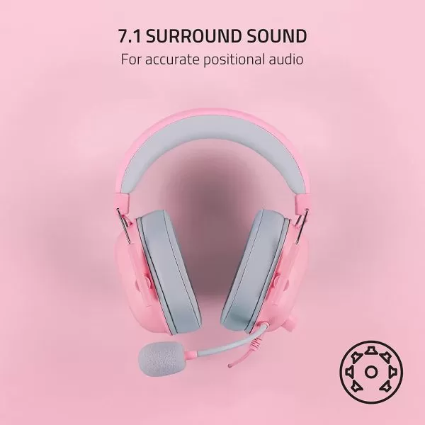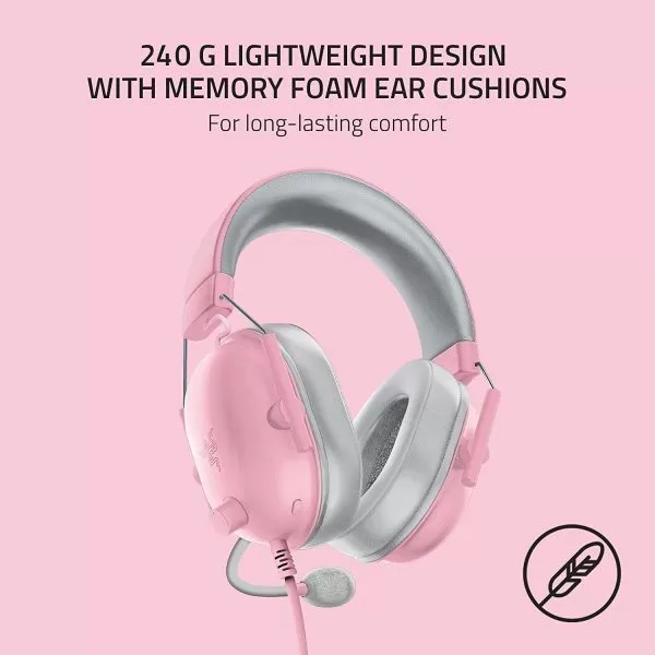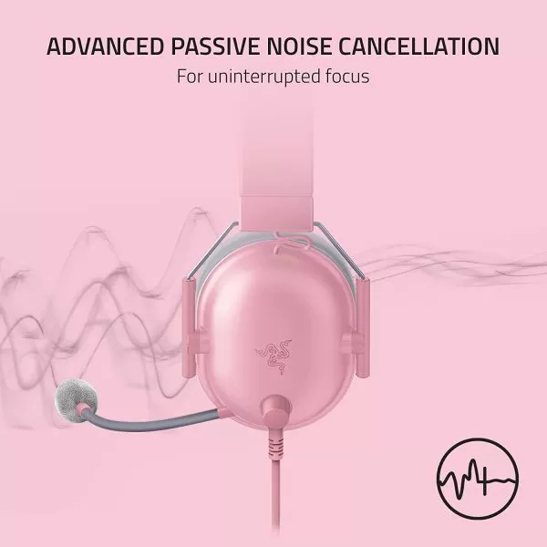 Casti Razer Blackshark V2 X cu fir, frecventa 12 Hz – 28 kHz, sensibilitate 100 dB, izolare fonica pasiva, frecventa de raspuns microfon: 100 Hz – 10 kHz, interfata jack 3.5 mm, roz