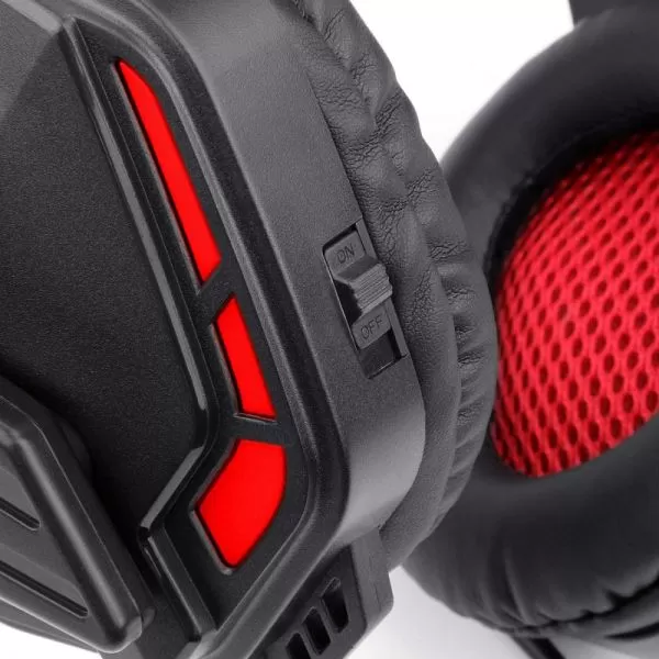 Casti gaming Redragon Themis negre iluminare rosie, include microfon (sensibilitate: -38dB±3dB, impedanta: 2.2KΩ), difuzoare: 50mm (frecventa raspuns: 20Hz-20KHz, sensibilitate (S.P.L): 116dB), design ergonomic, conectori: 2x jack TRS si USB, contine adaptor 2x jack 3.5mm TRS la 1x Jack 3.5mm TRRS, lungime cablu: 1.8m