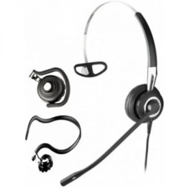Casca Jabra BIZ 2400 IP Mono cu microfon ST (standard sensitivity - sensibilitate standard) , functie NC (noise cancelling) pentru medii de lucru zgomotoase si 3 moduri diferite de purtare ( cu banda peste cap / atasata de ureche / cu banda in jurul gatului )