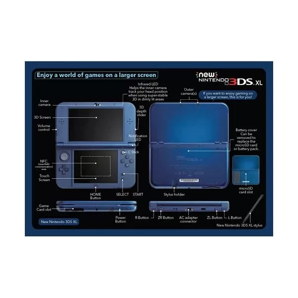 Pentru toti cei care au considerat ca ecranul consolei 3DS este un pic cam mic, Nintendo prezinta 3DS XL, cel mai nou membru al familiei 3DS ce vine cu un ecran cu 90% mai mare decat predecesorul sau, ceea ce ofera jucatorilor o experienta uimitoare.