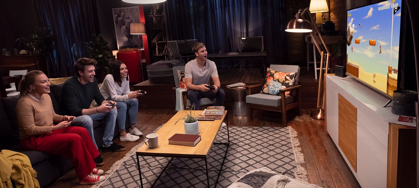 Adunaţi-vă in jurul unui ecran mare şi bucuraţi-vă de sesiuni de joc cu public. Conectează consola la televizor pentru ca toată lumea să se poată juca, de la copii pană la adulţi. E o modalitate plăcută de a te juca acasă impreună cu familia şi prietenii. |