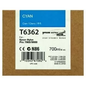 Cartus Inkjet Epson Cyan T636200 UltraChrome HDR 700 ml