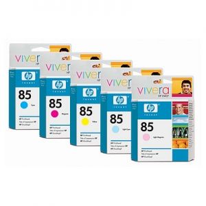Your work deserves the best inkjet printing technology has to offer. Dye-based HP Vivera Inks in HP 85 Ink Cartridges give you consistent color accuracy and photo-image quality that resists fading for 82 years.