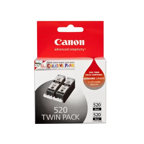 Pachet 2 Cartuse Inkjet Canon PGI-520 Black, Works with: CANON PIXMA iP3600/iP4600/MP540/MP620/MP630/MP980