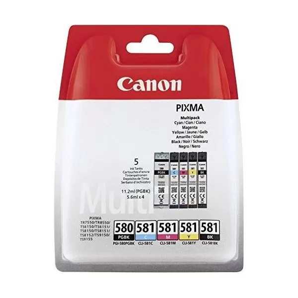 Pachet 5 Cartuse Inkjet Canon PGI-580XL, Black, Cyan, Yellow, Magenta