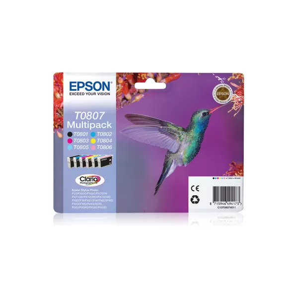 Cartus cerneala Epson T0807, multipack (cyan,magena,yellow,black,light cyan,light magenta), capacitate 6x7,4ml, pentru Stylus Photo P50, Stylus Photo PX650, Stylus Photo PX660, Stylus Photo PX700W, Stylus Photo PX710W, Stylus Photo PX720WD, Stylus Photo PX730WD, Stylus Photo PX810W, Stylus Photo PX820FWD, Stylus Photo PX830FWD, Stylus Photo R265, Stylus Photo R