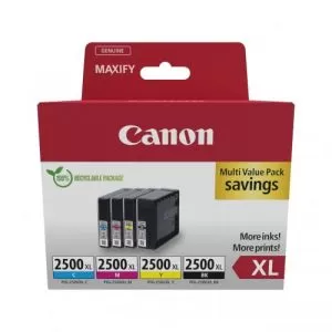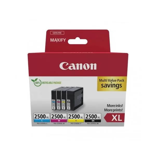 CANON Pachet cartuse cerneala PGI-2500XL BK/C/M/Y MULTIPACK, Capacitate: black (2500 pages, 70.9ml), cyan (1520 pages, 19.3ml), magenta (1520 pages, 19.3ml), yellow (1520 pages, 19.3ml), Compatibilitate: MAXIFY iB4050, MAXIFY iB4150, MAXIFY MB5050, MAXIFY MB5150, MAXIFY MB5155, MAXIFY MB5350, MAXIFY MB5450, MAXIFY MB5455
