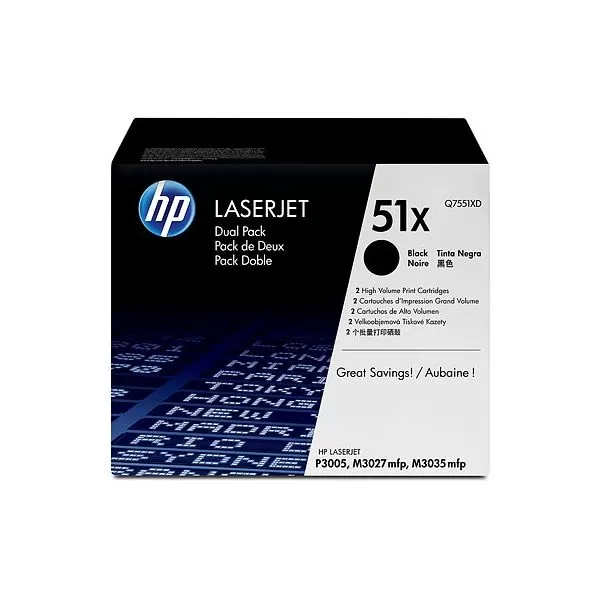 HP LaserJet Q7551X Dual Pack Black Print Cartridges