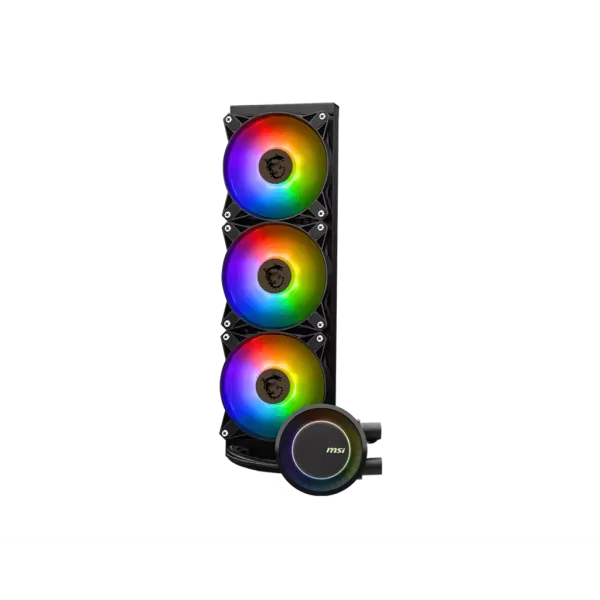 Cooler Procesor MSI MAG CORELIQUID E360 NEGRU, marime radiator 120mm, 3 ventilatoare ARGB, Viteza pompa: 3000 +/- 10%, Suport AMD: AM4/AM5, suport INTEL: LGA 1150/1151/1155/1156/1200/1700, Airflow: 25.5-75.04 CFM, Nivel de zgomot pompa: 20dBA
