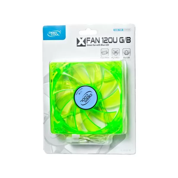 Deepcool Xfan 120U G/B Green 120mm UV LED fan, material reactiv la UV, 4 LED-uri albastre, 1300 RPM, 44.71 CFM, conectori: 3 pin si Molex, 9 pale