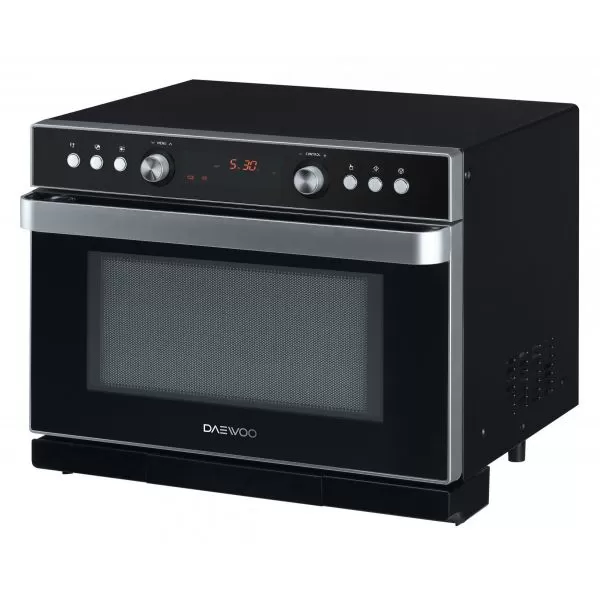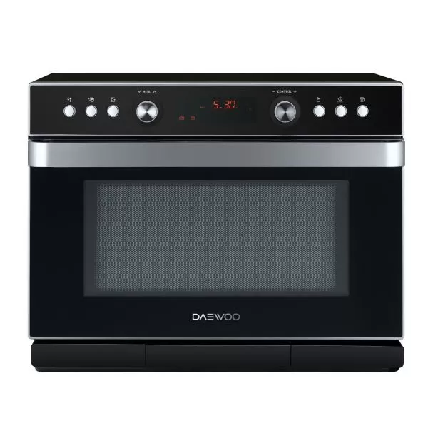 Cuptor microunde Daewoo, categorie Microunde/Grill/Combi/Convectie/Aburi, control digital, capacitate 34 litri, putere microunde 800 W, putere consumata (Grill) 1250W, putere consumata (Convectie) 1450W, putere consumata (Comb. Heating) 1550 W, 10 niveluri de putere, afisaj LED, 6 programe presetate, 5 programe instant, 7 programe gatire cu aburi, program dezghetare, functie Power Save, functie de blocare pentru copii, curatare cu aburi