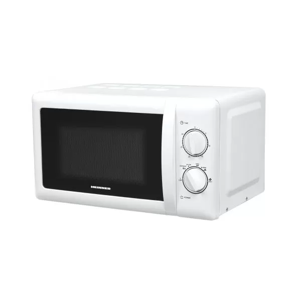Cuptor cu microunde Heinner HMW-20MWH, capacitate: 20L, panou de comanda mecanic, putere cuptor: 700W, 6 nivele de putere, timp maxim de gatire: 30 min, diametrul platoului rotativ din sticla: 245 mm, functie decongelare, semnal sonor la finalizarea programului, usa cu maner, nivel de zgomot: <(><<)>68dB, dimensiuni (Lxlxh): 45.1 x 25.6 x 34.5
