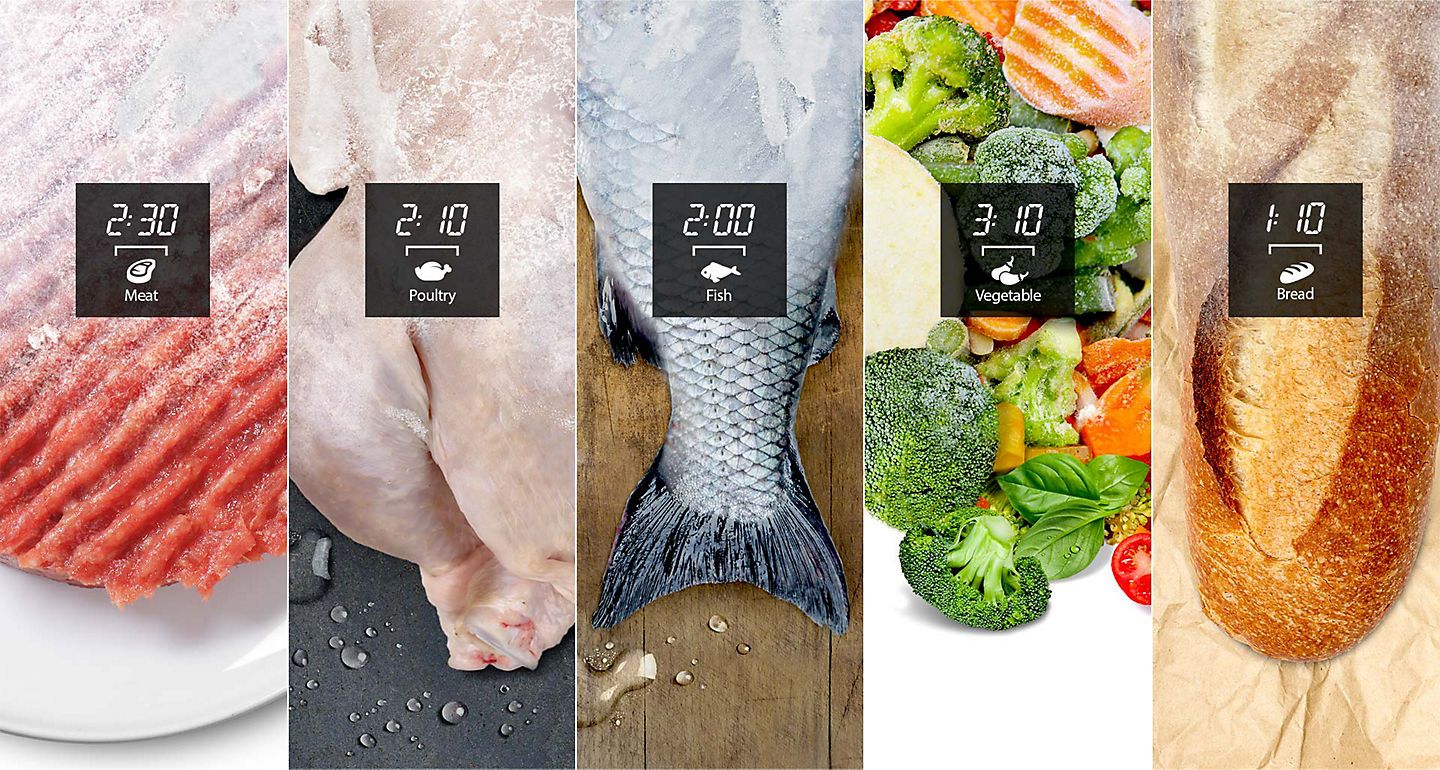 Dezghetare rapida Functia Quick Defrost dezgheata alimentele rapid si uniform. Algoritmul sau automat calculeaza timpul corect de dezghetare pentru 5 tipuri de alimente, asadar va va lua mult mai putin timp sa pregatiti ingredientele. ![]() |