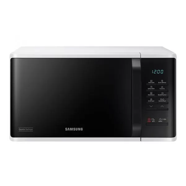 Cuptor cu microunde fara grill Samsung MS23K3513AW, Capacitate: 23 L, Putere: 800 W, Ceas digital: da, Timer: Da, Functii: Dezghetare/ +30 sec / Mod Eco / Dezodorizare/ Siguranta copii, Interior: Email ceramic, Culoare: Alb