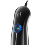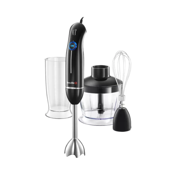 Dispune de un motor profesional puternic de 800W si viteza variabila pentru control total. Breville Hand Blender are un finisaj elegant negru cu insertie crom, design-ul fiind completat de butonul de pornire iluminat in albastru