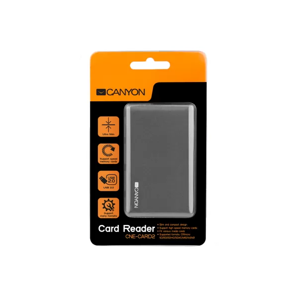 CANYON CardReader All in one CNE-CARD2 (CF/micro SD/SD/SDHC/SDXC/MS/Xd/M2) USB 2.0, Gray