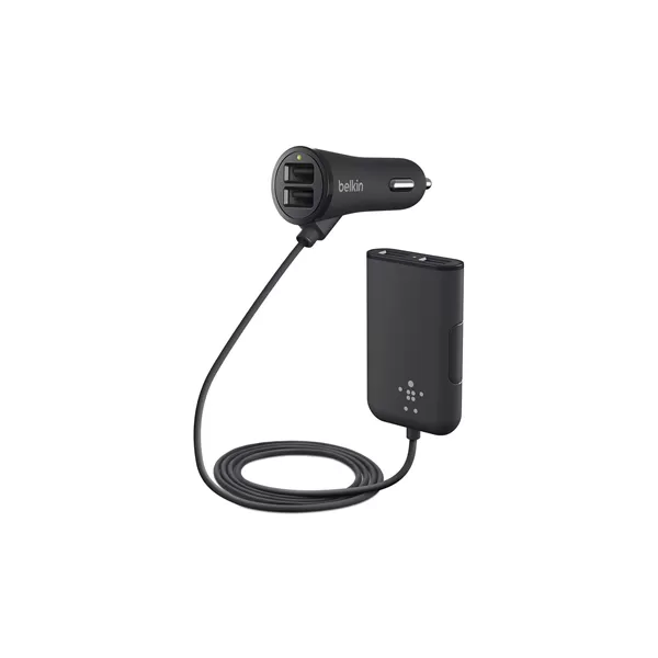 Incarcator auto Belkin pentru pasagerii din spate, 2 porturi 1A si 2 porturi 2.4 A, cablu 2m