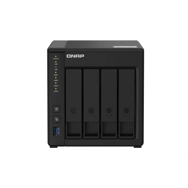 NAS QNAP 451D2 4-Bay, CPU Intel Celeron J4025 2.0GHz Dual Core (up to 2.90 GHz), 2GB DDR4 SODIMM (1x2GB), max. 8GB (2 DIMMs), 2.5" & 3.5" SATA 6Gb/s, 3Gb/s HDD (neincluse), 2xGbE LAN 4xUSB 3.0, Tower, adaptor alimentare, garantie 2 ani