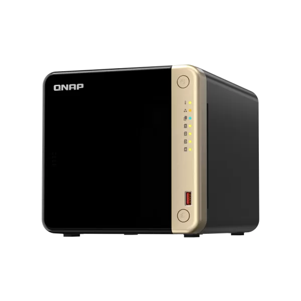 NAS QNAP 464 4-Bay, CPU Intel® Celeron® N5105/N5095 4-core/4-thread Processor, RAM 4GB (1x 4GB) DDR4 (2 x SODIMM slots, max. 16GB total), HDD 4 x 2.5"/3.5" SATA 6Gbps + 2 x M.2 2280 PCIe Gen 3 x1 SSD slots (neincluse), LAN: 2 x 2.5GbE, optional 10GbE expansion via a PCIe card, USB3.2 Gen2: 2 x Type-A USD2.0: 2, tower, 90W adaptor alimentare, garantie 3 ani