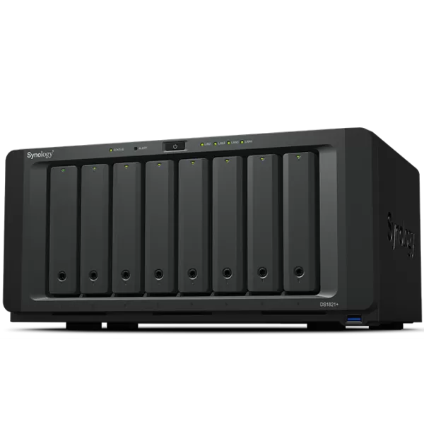 SYNOLOGY DS1821+ 8-Bay NAS AMD Ryzen Embedded V1500B quad-core 2.2GHz 4GB DDR4 up to 32GB 4xUSB 3.2 Gen 1 2xeSATA