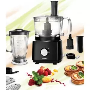 | Accesorii incluse: blender de 1.8L, accesorii pentru razuire si feliere, accesorii pentru tocare si framantare, disc pentru unt Setul de accesorii extinde posibilitatile de utilizare ale aparatului, astfel ca poti pregati mancare si prajituri deopotriva, poti razui, taia, amesteca sau framanta complet ingredientele, pentru a obtine acele preparate gustoase care ii vor bucura pe cei dragi. Blenderul cu o capacitate de 1.8L este perfect pentru smoothie-uri sau supe creme. |