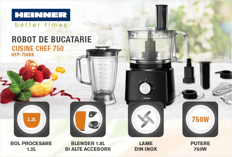 | Robot de bucatarie Heinner HFP-750BK, 750W, Blender, Negru | |