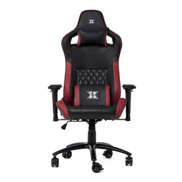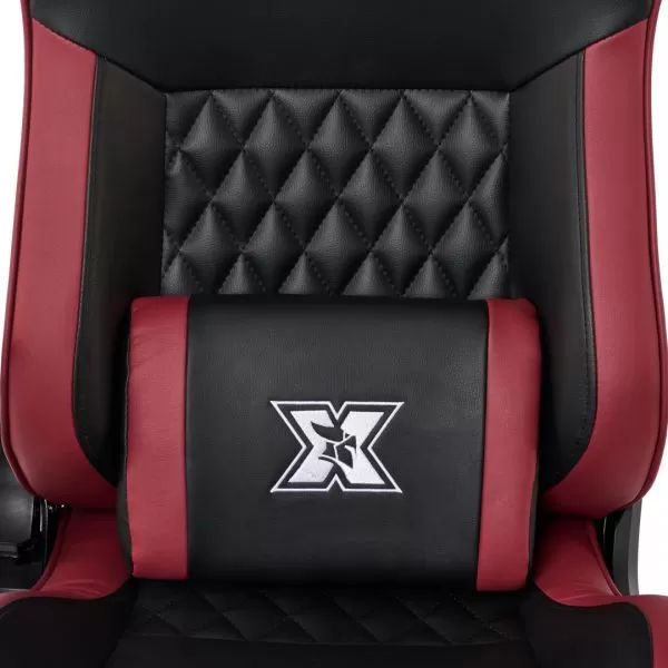 Scaun gaming X by Serioux, Theon, ajustabil, piele sintetica, piston pe gaz, manere reglabile, baza stea cu 5 picioare, greutate maxima admisa 150Kg, perne detasabile, negru/burgundy