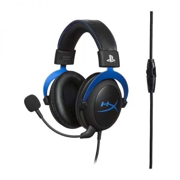 Casti cu microfon Kingston gaming, HyperX Cloud, Dedicate folosirii consoleleor PS4, Full size, Rama aluminiu, Microfon detasabil, Culoare: negru & albastru