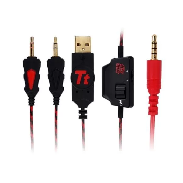 Tt eSPORTS CRONOS Black, compatibilitate: PC/telefoane mobile, diametru difuzoare: 40mm (impedanta: 32 Ohm, frecventa raspuns: 20Hz - 20KHz, sensibilitate: 117 ± 3dB, maximum input: 100 mW), microfon omni-directional (impedanta: 2.2k Ohm, sensibilitate: -54 ± 3dB, frecventa raspuns: 100Hz - 10 Khz, dimensiuni: 6 x 2.7mm), banda pentru cap captusita cu LYCRA pentru o presiune redusa si un confort sporit, design ergonomic, posibilitatea plierii pentru un transport mai usor, conectori placati cu aur, conectori: 2x jack TRS 3.5mm/jack TRRS 3.5mm, alimentare prin USB pentru iluminare LED, lungime cablu: 2m