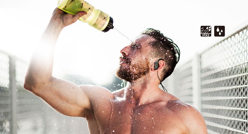 | Rezistente la patrunderea transpiratiei, rezistenta la apa IPX5 - Design rezistent pentru utilizare la activitati sportive Cu o clasificare IPX5 pentru rezistenta la apa si o structura rezistenta la patrunderea transpiratiei, castile BTS35 reprezinta un partener de incredere in timpul antrenamentelor. Castile BTS35 continua sa redea sunet chiar si in conditii de ploaie sau de transpiratie, iar dvs. va concentrati asupra mentinerii formei fizice. |