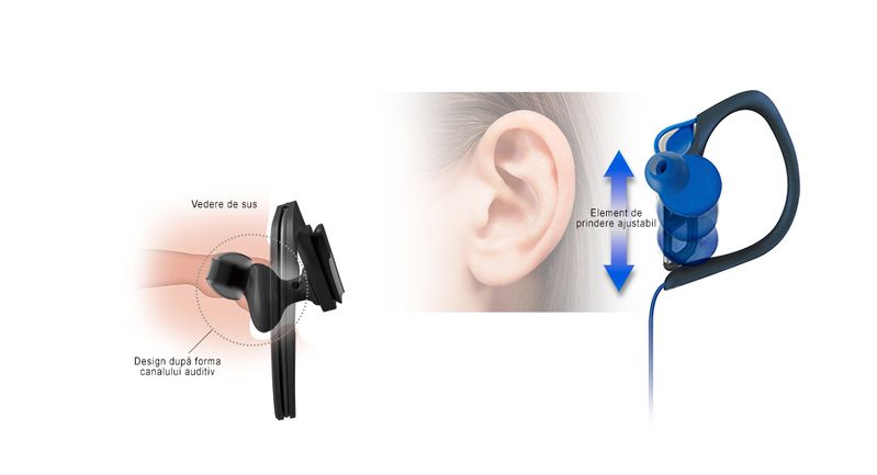 | Ideale pentru exercitii fizice dinamice - Designul dupa forma canalului auditiv si elementul de prindere ajustabil mentin aceste casti cu clema fixate confortabil in timpul activitatilor sportive. Designul cu rezistenta la apa (echivalenta cu IPX2) protejeaza impotriva patrunderii transpiratiei. De asemenea, sunetele de bas sunt clare si robuste. |