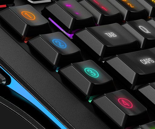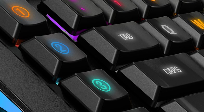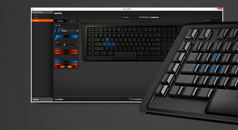 SCHEME DE ILUMINARE Apex M800 pune la dispozitie o suita incredibila de efecte precum Breathe, Color Wave, Cooldown si Reactive Keys care scot in evidenta sistemul de iluminare intens si clar al tastaturii. Mai mult de atat, poti personaliza tastatura prin crearea si programarea propriilor scheme de iluminat. |