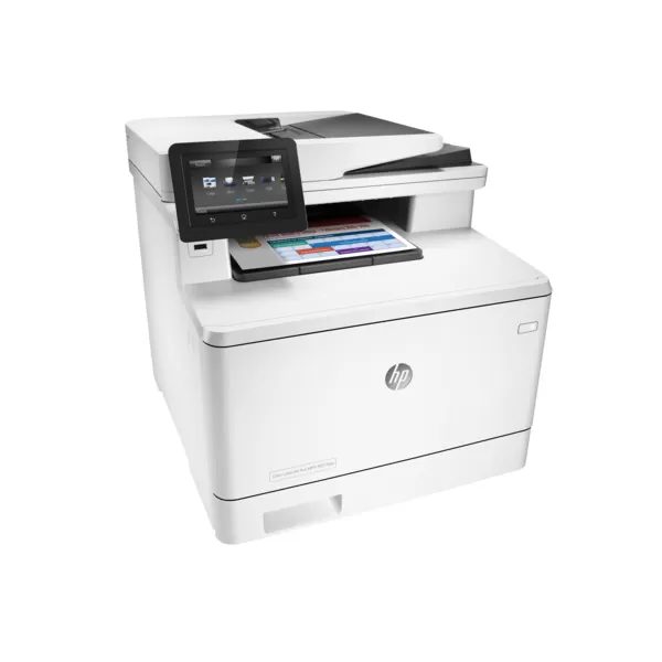 HP Color LaserJet Pro MFP M377dw; A4, max 24ppm black si color (19ipm duplex), max 600x600dpi, HP ImageREt 3600, Pantone calibrated, 256 MB NAND Flash, 256 MB DRAM, fpo (ready) 9 sec black, 9.9 sec color, HP PCL 6, HP PCL 5c, HP Postscript Level 3 emulation, PCLm, PDF, URF, native Office, tava 50+250coli, duplex print, control panel touch CGD color 10.9cm; scanner: color flatbed, max 26ppm mono, 21ppm color, ADF 50 coli, max 1200x1200dpi optic, 30 bit adincime de culoare, 256 niveluri de gri, Scan-to-email, Scan-to-cloud, Scan-to-USB, Scan-to-network folder, LDAP email lookup; copy: max 24 cpm black si color, max 600x600dpi, copii multiple 99, scalare 25-400%; USB2.0, GB Ethernet, USB host, wireless 802.11 b/g/n, tonere in-box 2.3k Bk, 1.2k C/M/Y, recomandat 750 - 4.000pag/luna, max. 50.000pag/luna, HP ePrint, Apple AirPrint, Wireless Direct Printing, Mopria-certified, Google Cloud Print 2.0, Mobile apps; optional tava 550 coli, tonere HP 410A/X
