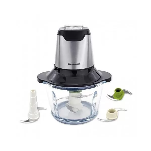 Mini tocator Heinner HMC-600AC, 6putere max 600W, bol din sticla 1.2 L, 3 seturi de cutite, 2 viteze, decoratii din inox