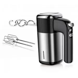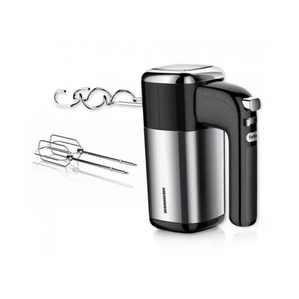 Mixer de mana Heinner HM-B400, putere: 400W, 5 viteze+Turbo, accesorii: 2 teluri si 2 carlige pentru framantat din inox, sistem de siguranta buton ejector, decoratiuni din inox, negru