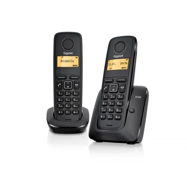 Gigaset A120 DUO - Tastatura optimizata,Plug&play: receptor preinregistrat la statia de baza, ecran luminos,Convorbiri lungi/timp in asteptare de psns la 18/200 de ore, agenda telefonica cu pana la 50 de intrari, lista apeluri cu pana la 25 de intrari, reapelare ultimele 10 numere formate, vizualizare data si ora plus functia alarma, ID2 apelant, modul ECO Plus fara radiatii .