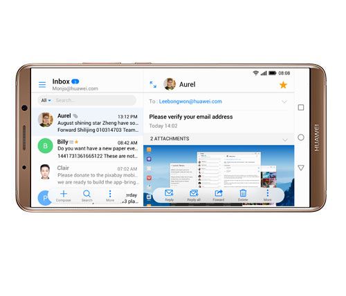 HUAWEI Mate 10 Pro este configurat pentru vizualizarea pe mai multe coloane ca pe tableta, ceea ce face desfasurarea sarcinilor de lucru din mers la fel de confortabila ca atunci cand sunteti la birou.