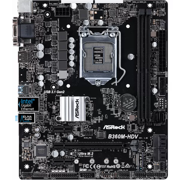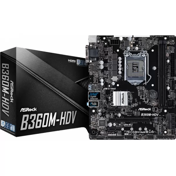ASRock B360M-HDV, INTEL B360 Series, LGA1151, 2 DDR4, 6 x SATA3