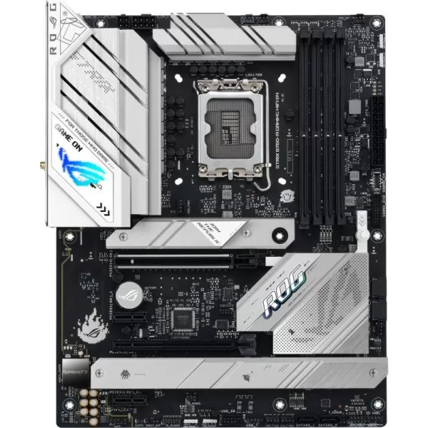 Placa de baza ASUS ROG STRIX B760-A DDR4 WIFI LGA1700 CPU Intel® Socket LGA1700 for 13th Gen Intel® Core™ Processors & 12th Gen Intel® Core™, Pentium® Gold and Celeron® Processors* Supports Intel® Turbo Boost Technology 2.0 and Intel® Turbo Boost Max Technology 3.0** * Refer to www.asus.com for CPU support list. ** Intel® Turbo Boost Max Technology 3.0 support depends on the CPU types. Chipset Intel® B760 Chipset Memory 4 x DIMM, Max. 128GB, DDR4 5333(OC)/5066(OC)/5000(OC)/4800(OC)/4600 (OC)/4400(OC)/4266(OC)/4000(OC)/3733(OC)/3600(OC)/3466(OC)/3400(OC)/3333 (OC)/3200/3000/2933/2800/2666/2400/2133 Non-ECC, Un-buffered Memory* Dual Channel Memory Architecture Supports Intel® Extreme Memory Profile (XMP) OptiMem II * Supported memory types, data rate(Speed), and number of DRAM modules vary depending on the CPU and memory configuration, for more information refer to www.asus.com for memory support list. Graphics 1 x DisplayPort** 1 x HDMI® port*** * Graphics specifications may vary between CPU types. Please refer to www.intel.com for any updates. // Please refer to AMD CPU specifications. ** Supports max. 4K@60Hz as specified in DisplayPort 1.4 *** Supports 4K@60Hz as specified in HDMI 2.1. **** VGA resolution support depends on processors' or graphic cards' resolution. Expansion Slots Intel® 13th & 12th Gen Processors 1 x PCIe 5.0 x16 slot Intel® B760 Chipset 1 x PCIe 3.0 x16 slot (supports x4 mode)* 2 x PCIe 3.0 x1 slots* * PCIe x1(G3)_1 and PCIe x1(G3)_2 slots share bandwidth with PCIe x16 (G3). When PCIe x1(G3)_1 or PCIe x1(G3)_2 slot is operating, PCIe x16 (G3) will only supports x2 mode. - To ensure compatibility of the device installed, please refer to https://www.asus.com/support/ for the list of supported peripherals. Storage Total supports 3 x M.2 slots and 4 x SATA 6Gb/s ports* Intel® 13th & 12th Gen Processors M.2_1 slot (Key M), type 2242/2260/2280 (supports PCIe 4.0 x4 mode) Intel® B760 Chipset M.2_2 slot (Key M), type 2242/2260/2280/22110 (supports PCIe 4.0 x4 mode) M.2_3 slot (Key M), type 2242/2260/2280 (supports PCIe 4.0 x4 mode) 4 x SATA 6Gb/s ports * Intel® Rapid Storage Technology supports SATA RAID 0/1/5/10. Ethernet 1 x Intel® 2.5Gb Ethernet ASUS LANGuard // TUF LANGuard