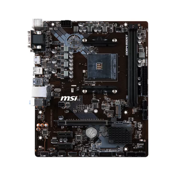Placa de baza MSI Socket AM4 A320M PRO-M2 V2, Chipset AMD A320, CPU Max support Ryzen, Dual Mem Channel, 2x DIMM slots, 32GB Max Memory, 1x PCI- E x16, 1x PCI-E Gen3, 2x PCI-E x1, 4x SATA III, 1x M2 slot, 1x TPM, 6x USB 3.1, 6, USB 2.0, 1x Serial Port, 1x Audio port Realtek ALC887, 1x DVI-D, 1x VGA, 1x HDMI, m-ATX.