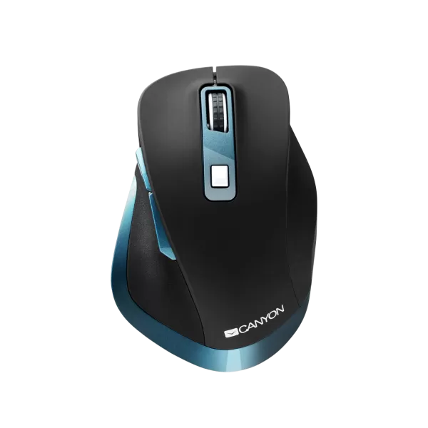Canyon 2.4Ghz Wireless mouse, with 6 buttons,DPI 800/1200/1600/2000/2400,Battery:AAA*2 pcs , Black-blue 119.6*81.1*43.3mm86.8g
