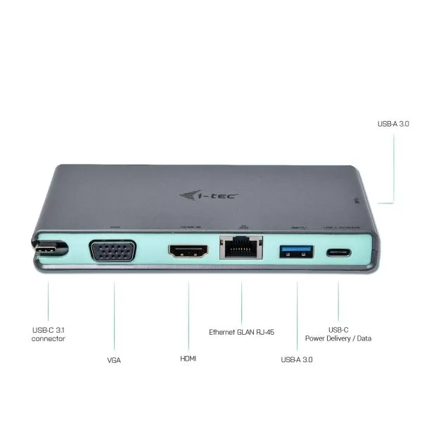 ITEC C31TRAVELDOCKPD i-tec USB-C Travel Docking Station 1x HDMI 4K Ultra HD lub VGA 1x GLAN PD Data