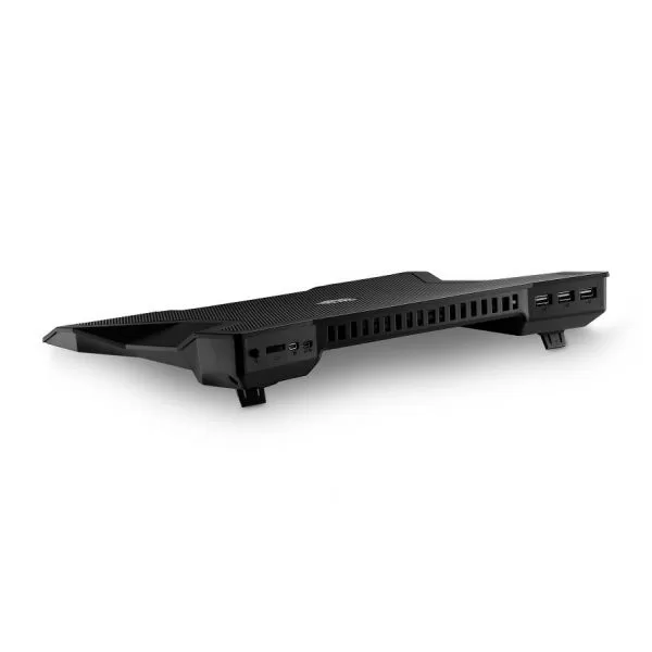 sistem de racire pentru notebook 17", material aluminiu si plastic, ventilator silentios de 230mm (600-800 RPM, 19 dBA), include port USB2.0 x 3, fan-controller inclus, se alimenteaza prin mini-USB, greutate 880g