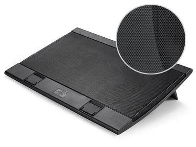 The front panel is made of high quality metal mesh, which allows optimal airflow through the panel to cool the notebook effectively.