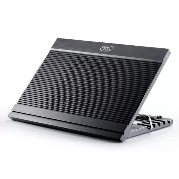 Deepcool N9 Black, structura din aluminiu si plastic, dimensiune notebook: 17 (maxim), 180mm fan (600-1000 RPM, 84.7 CFM, 16-20 dBA, include fan controller), 4 porturi USB, alimentare prin portul USB, sase unghiuri de inclinare, design anti-alunecare.