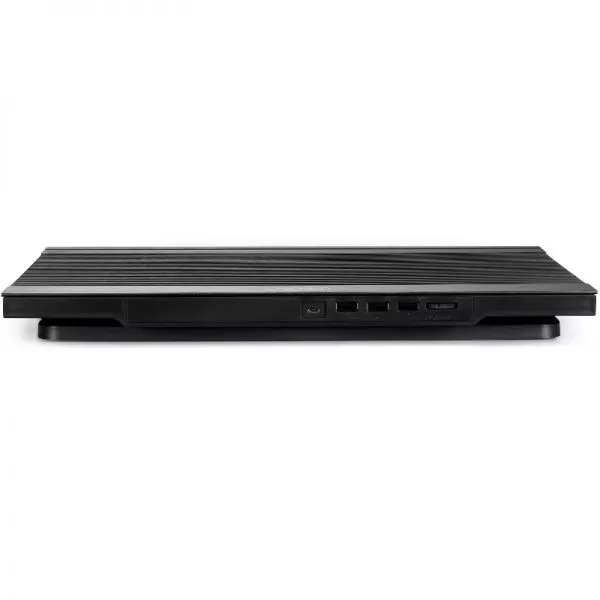 Stand/Cooler Notebook Deepcool N9 Black, structura din aluminiu si plastic, dimensiune notebook: 17” (maxim), 180mm fan (600-1000 RPM, 84.7 CFM, 16-20 dBA, control turatie ventilatoare), 4 porturi USB, alimentare prin portul USB, sase unghiuri de inclinare, design anti-alunecare, dimensiuni: 380x279x34mm