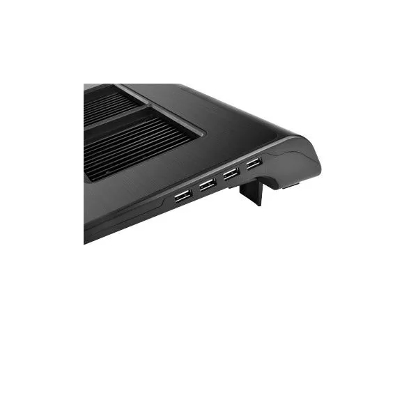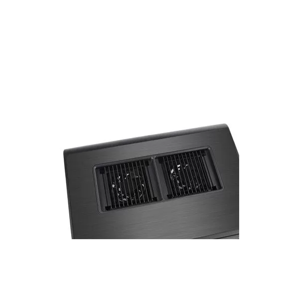 Thermaltake Allways Control, structura din plastic si aluminiu, design ultra-subtire (numai 15mm), design anti-alunecare, dimensiune notebook: 10” - 17” (maxim), doua ventilatoare de 70mm cu fante ajustabile pentru controlul directiei fluxului de aer (1300-2100 RPM, 17.6 CFM, 23.2 dBA, control turatie ventilatoare), 4 porturi USB, alimentare de la portul USB, dimensiuni: 360 x 288 x 53 mm, greutate: 820g