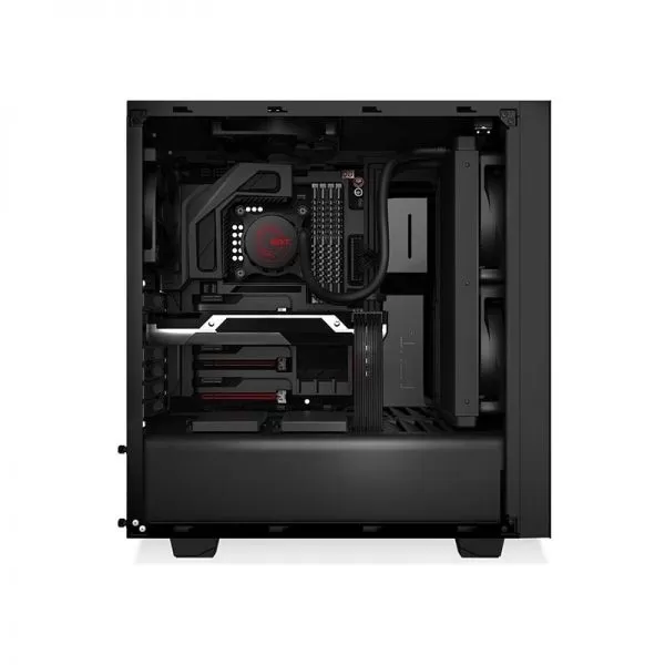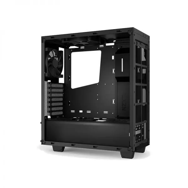 NZXT Source 340 Black, SECC Steel ATX Mid Tower, fara sursa, interior vopsit alb, 2+1x3.5” (intern), 2x2.5” (intern), design tool-less, fata – 2x 140/120mm fans (optional), spate – 1x 120mm FN V2 fan (inclus), tavan – 1x 120mm FN V2 fan (inclus) sau 1x 140mm FN V2 fan (optional), 2x USB 3.0, 1x Audio/Mic, ATX / microATX / Mini-ITX, sloturi expansiune: x7, inaltime maxima cooler procesor: 158mm, lungime maxima placa video: 364mm (fara radiator intern instalat) sau 334mm (cu radiator intern instalat), suport radiatoare water cooling: fata – 2x 140/120mm, spate – 1x 120mm, filtre de praf incluse, dimensiuni: 200mm x 445mm x 432mm, spatiu pentru wiremanagement 17-168mm