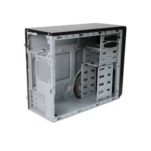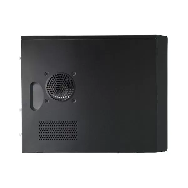 carcasa Mini Tower cu panel frontal din mesh, SECC body, compatibila cu Micro-ATX , 2 drive bay de 5.25", USB 2.0 x 2, Mic x 1, Audio x 1, include 1 ventilator de 120mm, culoare neagra